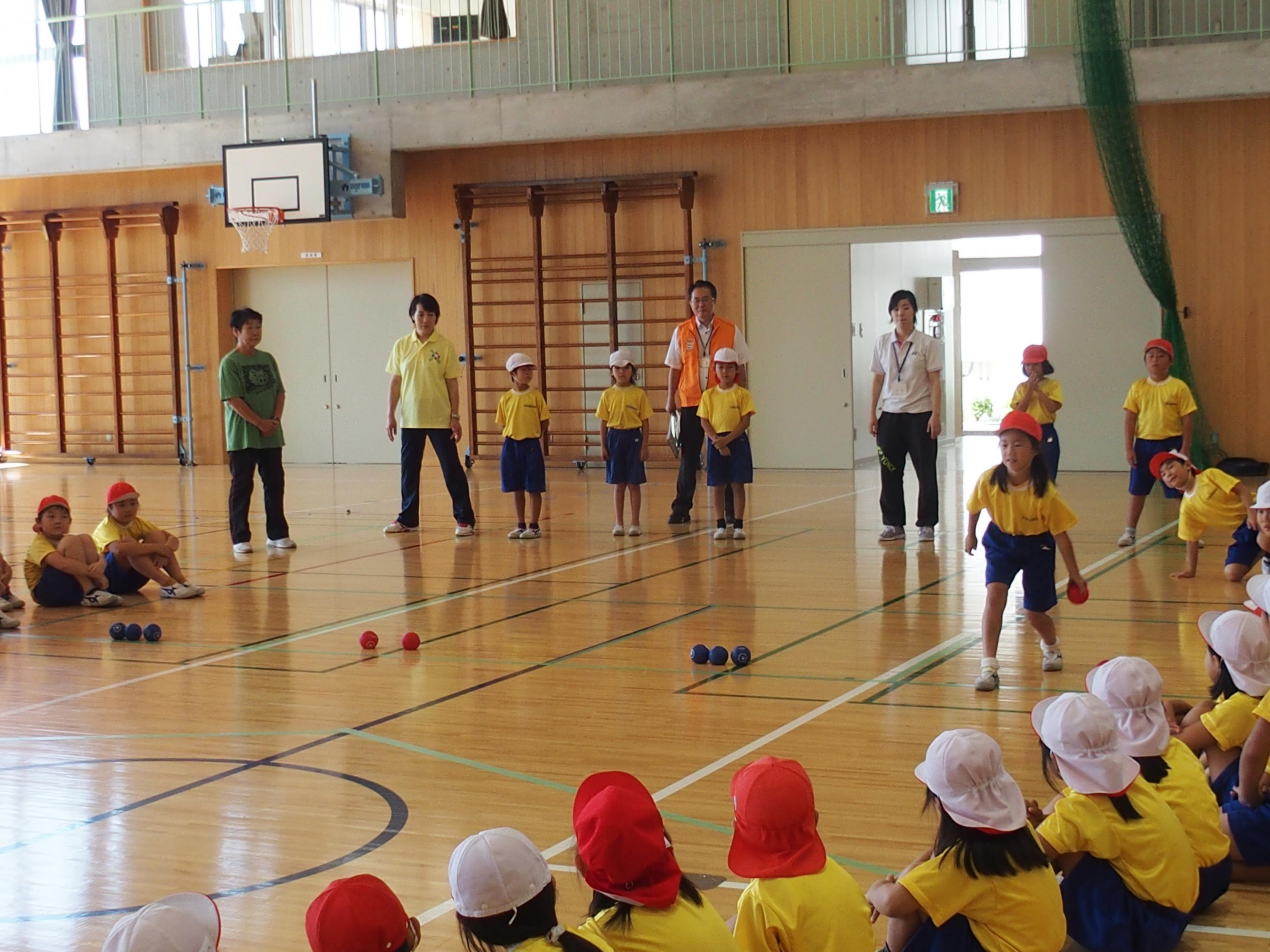 | 障害者スポーツであるボッチャを通じて、障害者理解を深め、みんなが互いの人格を尊重し支え合い、相手を思いやり、相手の立場に立った行動を身につけることを目的に開催しました。 【感想】 ・障害者がどれだけ大変かしれてよかったです。またボッチャをしたいです。障害者を助けていきたいです。 ・車いすに乗ってできるとは思いませんでした。 ・ボッチャはいろいろな人ができるからよいと思いました。 ・車いすに乗れなかったのは残念だったけど、人権や、ボッチャの意味がわかりました。 ・家のみんなに伝えたいです。 ・車いすの人が困っていたら助けます。 ・ボッチャ体験をして楽しく、体が少しつよくなってよかった。またやりたい。 ・障害がある人もできるのがすごいと思った。 ・ルールがわかってよかった。ユニバーサルスポーツというのをしれてよかった。次はがんばりたい。 | |