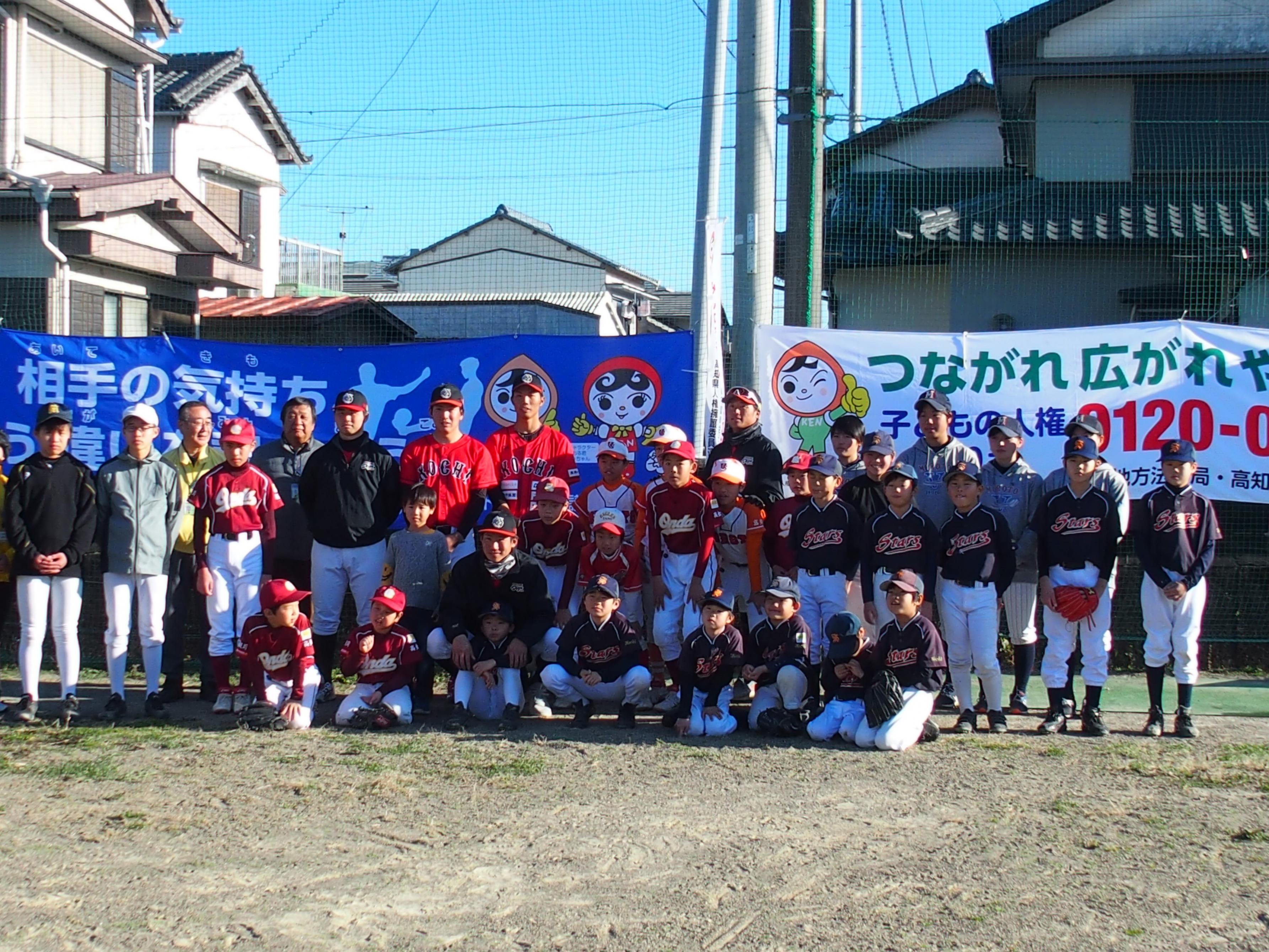 黒潮町にある大方球場にて、小・中学生を対象とした人権啓発野球教室を開催しました。 |