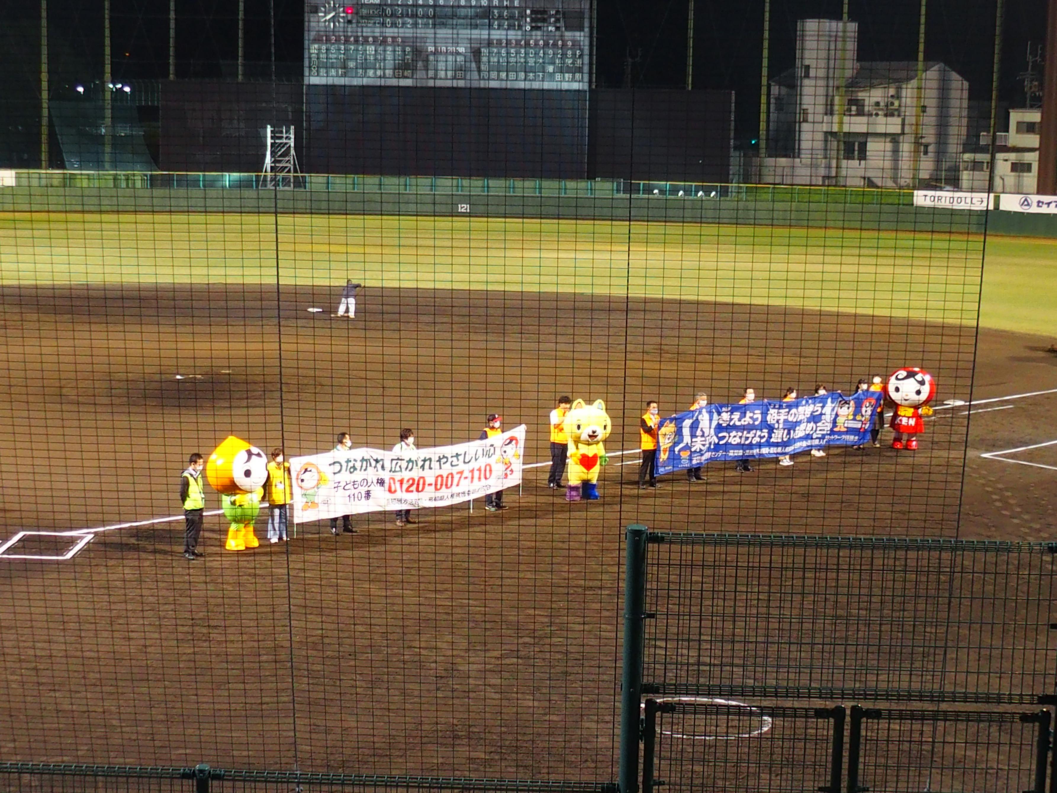 | この試合は子どもの人権を考える試合とし、人権キャラクターの「ここるん」、「まもる君」、「あゆみちゃん」と一緒に啓発を行いました。試合途中にはグラウンドで、いじめや児童虐待があった場合の相談窓口をアナウンスして、啓発と相談窓口の周知に努めました。 アンケート調査では、「今回のプロスポーツ組織と協力した人権啓発の内容は、良い催しだと思いますか?」の問いには、98%の方から「良い催しだった」との回答があり、とても有意義な試合となりました。 【意見・感想】 ・初めて観戦し、この催しにも驚いたが、良い取組みだと思った。日常、様々な人権感覚に悲しい思いをすることもあるので、こういう啓発を是非続けてほしいと思った。 ・こどもの人権PRなのでよかった ・幅広い年齢の人が知れる良い機会!!また行うべきです。 ・大変すばらしい! |