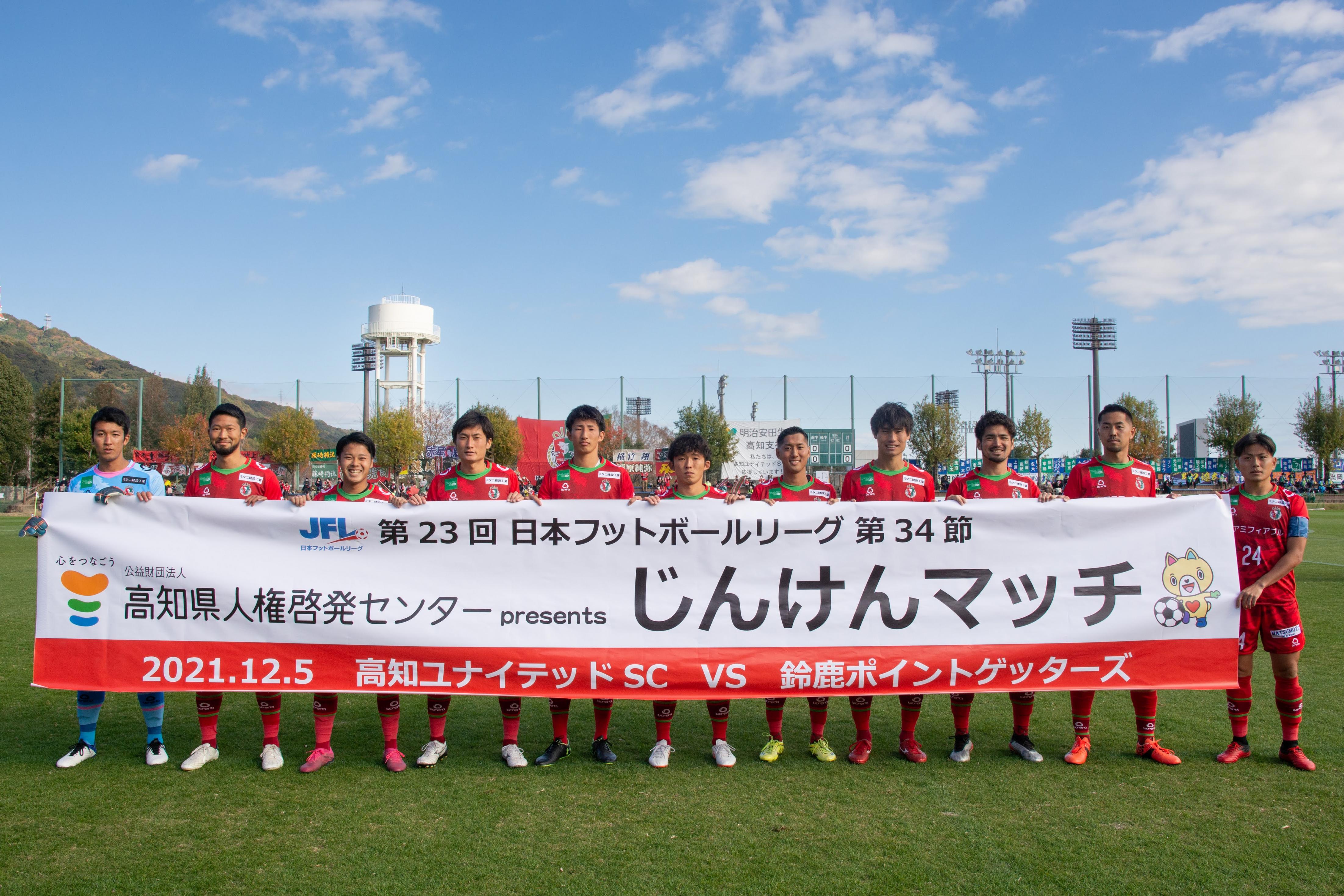 ![]() | 第23回日本フットボールリーグ 34節 高知ユナイテッドSC 対 鈴鹿ポイントゲッターズ 日時:令和3年12月5日(日)13:00~ 場所:春野運動公園球技場 来場者数:518名 共催・協力:高知地方法務局人権擁護課、高知市人権同和・男女 共同参画課、高知県人権擁護委員連合会 |