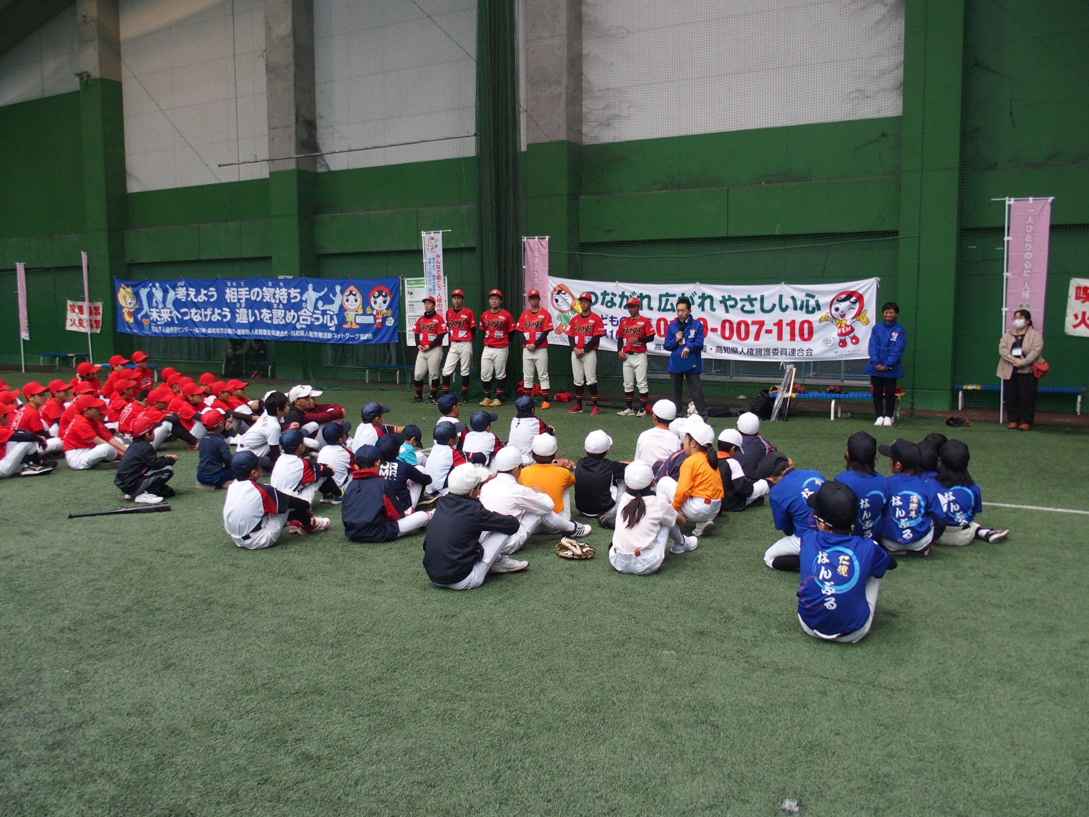 この人権野球教室は、いじめ等の身近な人権問題に関心を持ち、理解と認識を深めるため、県内のスポーツ組織と連携・協力して行っているものです。 | |