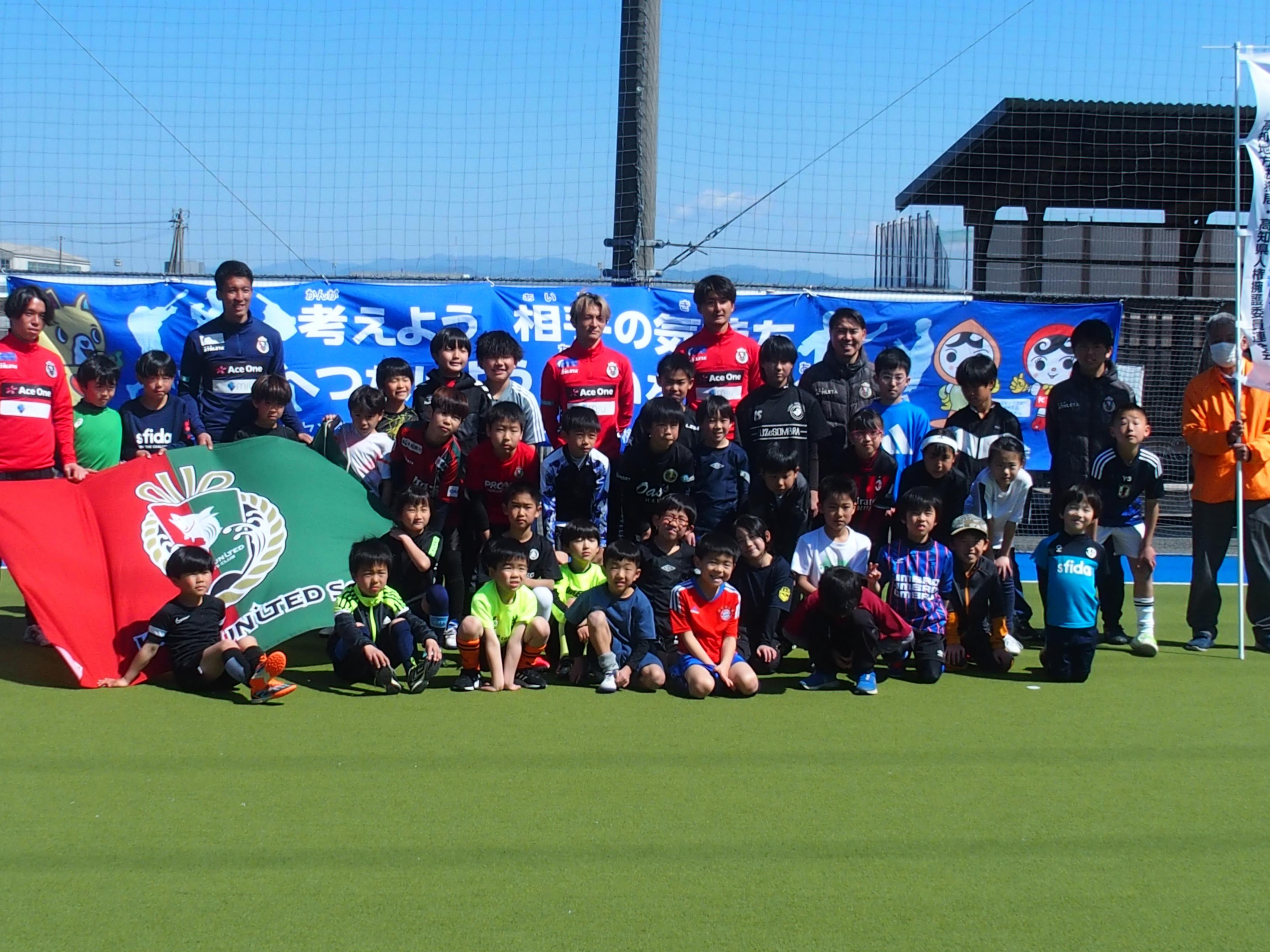 | この人権サッカー教室は、いじめ等の身近な人権問題に関心を持ち、理解と認識を深めるため、県内のスポーツ組織と連携・協力して行っているものです。 今回の人権サッカー教室は、気持ちの良い晴天に恵まれ、1年生から6年生まで女子も男子も合わせて44名の小学生が参加してくれました。 まずは、子どもたちも選手も一緒にじんけん〇×クイズにチャレンジです。クイズに出題されたパラリンピックの正式種目である「ブラインドサッカー」にちなんで、ブラインドサッカーで使用される専用のサッカーボールをみんなに体験してもらった時は、音の鳴るボールを興味深そうに扱っていました。 続いて、1・2・3年生グループと4・5・6年生グループに分かれ、コートを1面ずつ使っての練習となったサッカー教室では、憧れの選手とコーチと一緒に練習をしたりミニゲームをしたりと、子どもたちはのびのびと楽しそうにプレーしていました。この教室で初めて一緒にプレーするチームメンバーもいる中で、みんなでボールをパスし合いながら、チームで協力してサッカーをしている様子がとても印象的でした。また、コーチも選手も、子どもたちのモチベーションが高まるような声掛けをしながらサポートする様子が心に残りました。 最後に、選手から子どもたちに向けて人権スピーチをしていただきました。自分自身がチームの仲間に支えられた体験から仲間・友達の大切さを感じたこと、みんなも仲間や友達を大切にしてほしい、という選手からのメッセージは、アンケートの感想からも、子どもたちの心にしっかり届いたようです。 人権サッカー教室の後は、憧れの選手と話をして、晴れやかな顔で帰っていく子どもたちの姿を見送りました。 【感想】 ・いやなことをいうとみんなが傷つくし、みんなで助けたらいいことが分かった。 ・他の人にも自分から人権問題について話したいと思いました ・いろんな人や知らない人といっしょにかかわったり、サッカーをいっぱいできてうれしかったし、練習でみんなが笑顔のところが良かった ・いろんな人とサッカーできてよかった ・じっさいに選手がした体験の話しだったから人権問題について考えが深まった |